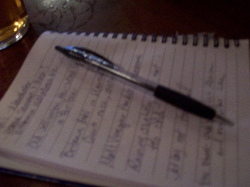 My notes . . . so I can remember what I saw and who I met, what I ate and what I drank.